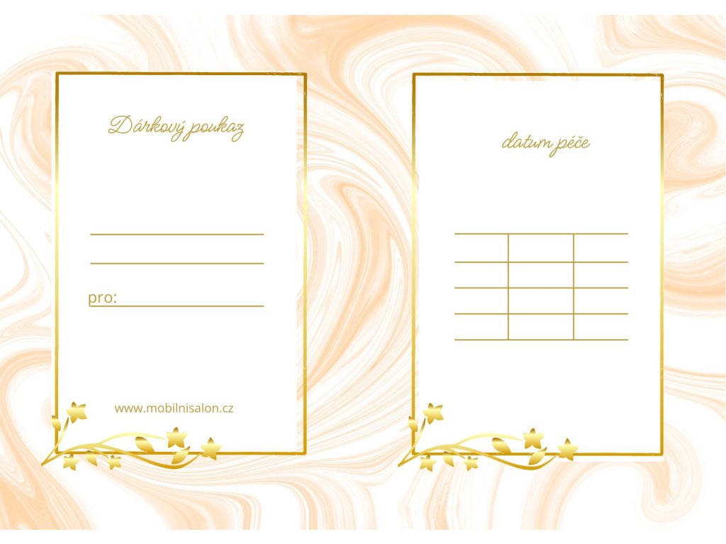 Dárkové poukazy můžete využít na všechny služby Mobilního salonu kromě pedikúry. Pedikúra má vlastní speciální poukaz na 12 ošetření – tedy celoroční péči, jednou měsíčně.